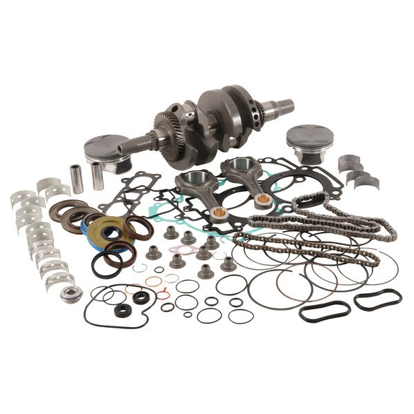 Description: Convenient one stop shop in a box. Nearly all components required for a complete and professional rebuild. Features: Includes: Vertex Piston Kit (standard compression piston, rings, pin and clips) Hot Rods Heavy Duty crank (stock stroke - includes wrist pin bearing for two strokes) Hot Rods main bearing/seal kit Hot Rods transmission bearing kit (includes transmission bearings, output shaft collar and sprocket lock washer) Hot Rods counter balancer bearing Kit Hot Rods water pump bearing and seal kit Vertex complete gaskets kit, including seals and O-ring kit (covers top and bottom) Hot Cams cam chain Wrench Rabbit kit saves money compared to purchasing items individually